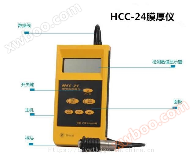 The HCC-24 magnetoresistance thickness gauge is a portable measuring instrument powered by batteries, which can quickly and non destructively measure the thickness of non-magnetic coatings on the surface of magnetic materials. For example, copper, zinc, cadmium, chromium coatings, and paint coatings on iron and steel. Due to the application of integrated circuits and microprocessors, this instrument has the advantages of simple operation, convenient use, good stability, and high measurement accuracy. The instrument has mathematical and statistical functions, which can directly display the number of measurements, the maximum and minimum values of the average. This instrument uses the principle of electromagnetic induction for measurement and complies with ISO2178 and GB/T4956. When the probe comes into contact with the cover layer, the probe and the magnetic substrate form a closed magnetic circuit. Due to the presence of the non-magnetic cover layer, the magnetic resistance of the magnetic circuit increases, and the magnitude of the magnetic resistance is proportional to the thickness of the cover layer. By measuring the magnetic resistance, analyzing and processing it through a computer, the measured value is directly displayed on a liquid crystal display.