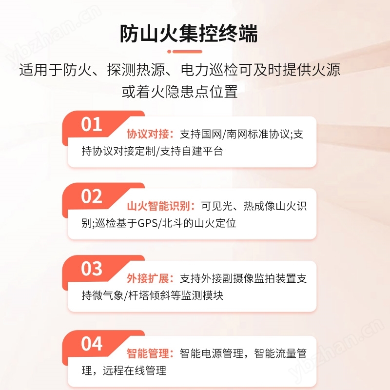 Mountain fire monitoring systemThe monitoring station adopts a highly integrated design and integrates IoT awareness, wireless communication, artificial intelligence and edge computing technologies to form a three-tier architecture system of "terminal awareness - data transmission - cloud research and judgment".