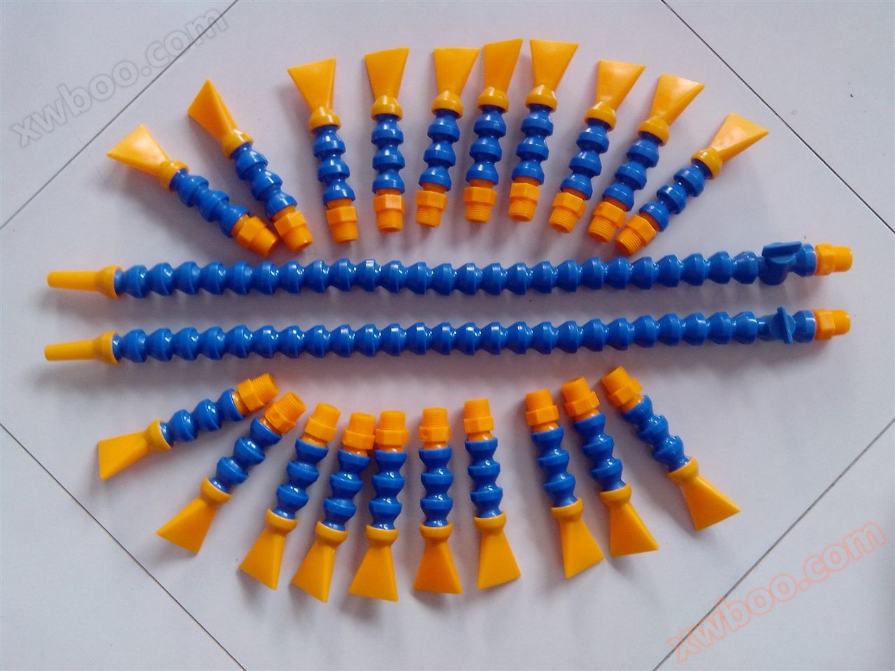 Plastic cooling pipeAlso known as adjustable plastic cooling pipe, universal plastic cooling pipe, engineering plastic cooling pipe is a comprehensive guidance system for liquid and gas media, with a pressure of up to 4pa. It is made of high-quality engineering plastic, and its various joints are made using precision injection molding technology. The contact surfaces of each joint point are accurately calculated and manufactured using advanced injection molding technology. Adjustable plastic cooling pipes do not require any additional conduits and can provide excellent sealing by simply contacting the curved surface themselves. The tight fit of its contact surface is sufficient to ensure that the cooling water pipe always maintains its initial position under the impact of high-pressure water. The adjustable plastic cooling pipe is a truly modular structure, which can not only increase or decrease the number of sections as needed, but also install switches in each section as needed, and has different connections and water outlets. And there are also one in and two out tees. The material of the engineering plastic cooling pipe is nylon 66, and the outlet nozzle types include round mouth, flat mouth, and large-diameter round mouth. The screw buckle also has inner screws and outer screws, which are installed according to customer needs.