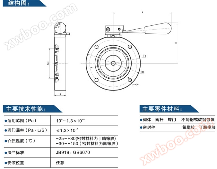 Vacuum butterfly valve, GI high vacuum butterfly valve technical parameters: